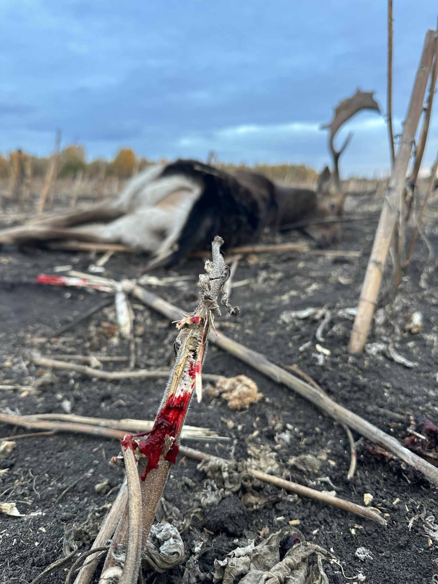 És miközben lehajoltam a vadhoz, egyetlen gondolat járt a fejemben: nem én választottam őt, hanem ő engedte meg, hogy megtaláljam. Amikor a terítékfotót készítettük mögöttünk 150-200 méterre a fasorból kilépett a rivális bika, akivel még az imént heves csatát vívott. Bámult minket, hosszasan. Hogy a felénk érzet megvetés, vagy a riválisa iránt érzet tisztelet vezérelte ezt csak ő tudja.