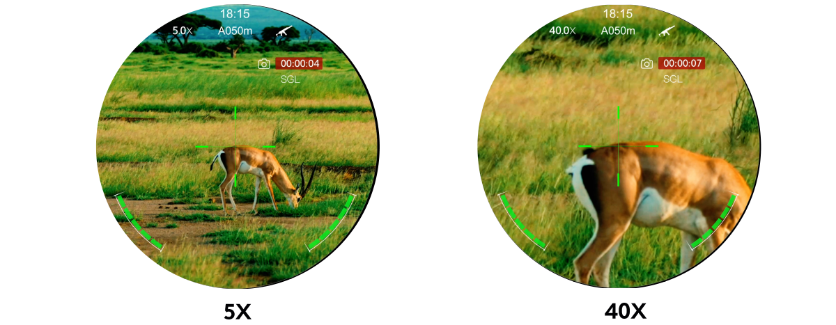 A Nite D70R szíve a 4K Ultra digitális szenzor, amely 3536×3536 pixeles felbontással dolgozik, így minden részlet éles és tiszta lesz, akár nappali, akár éjjeli használat során. A 70 mm-es F2.0 objektív és a 5–40× fokozatmentes zoom lehetővé teszi a széles látómezőt és a precíz célzást, míg a 60 Hz-es képfrissítés sima és folyékony képet biztosít, még gyors mozgások esetén is.